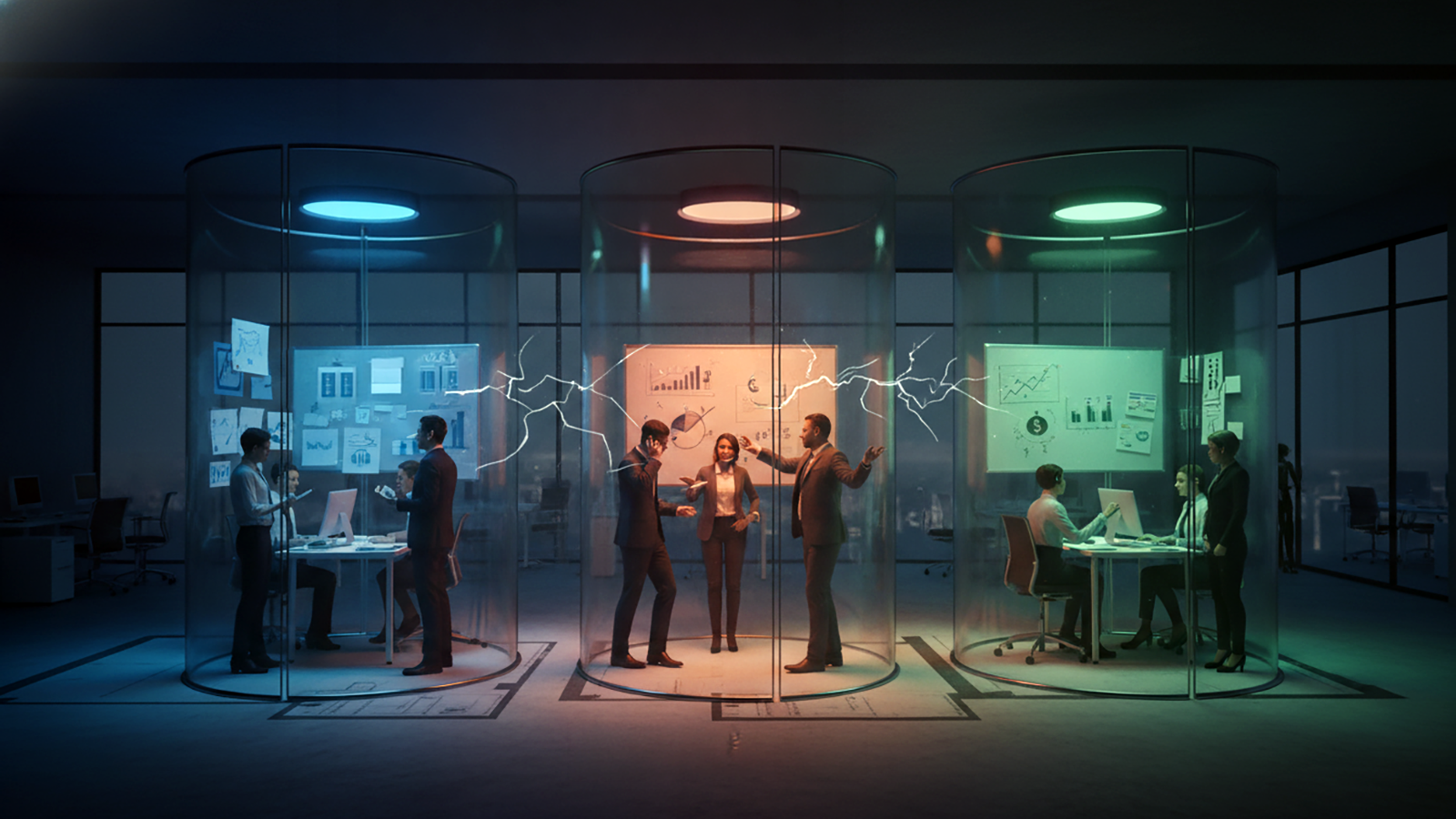 Organizational silos are commonly treated as structural problems, but this post argues their true origin is psychological: the moment a person conflates what they do with who they are. When professional roles become core identities, they shape perception itself — each specialist sees reality through an invisible lens formed by their title. In groups, these sealed worldviews prevent genuine collaboration and erode shared responsibility. Drawing on Descartes, the post invites readers to hold their roles more lightly — as tools rather than as identity — suggesting this personal shift is the real precondition for organizational wholeness.